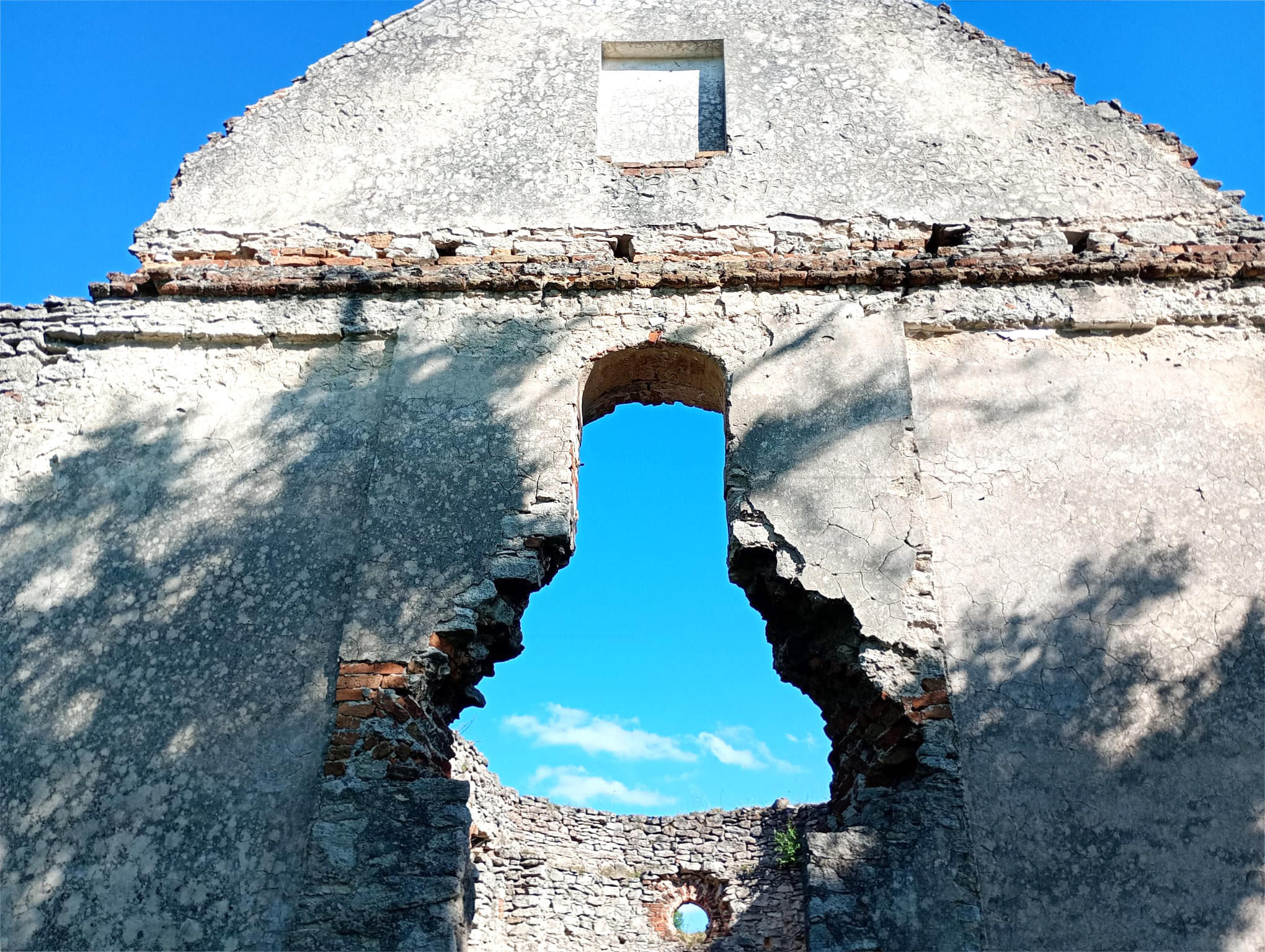 Przez szczeliny w oknach zabitych deskami przenikają promienie światła i na chwilę ocieplają pustkę i roztapiają smutek. Patrzę jak plamy światła przesuwają się po ogołoconych ścianach, jak wibrują, tańczą na pustej scenie z resztką pokrytych kurzem przedmiotów balansujących na krawędzi nieistnienia. I czuję się jak widz, który nieproszony wkradł się do teatru cieni. Oglądam ten symboliczny spektakl, gdzie głównymi bohaterami są: efemeryczne światło teraźniejszości i rozległy cień przeszłości. Patrzę na pojawiające się błyski; ulotne, nietrwałe, przemijające, jak ludzka pamięć. Opuszczam wnętrze świątyni. Pył osiadł na posadzce, zakrywając ślady moich stóp, słońce zmieniło swoje położenie na niebie, spektakl dobiegł końca, kurtyna opadła, a wnętrze spowiła ciemność.